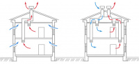 Основной вид – механическая вентиляция, которая устраняет тепло из воздуха. Эта система оснащена специальной установкой, которая выполняет как приток, так и вытяжку воздуха. Как правило, их устанавливают в санузлах, кухнях и кладовых помещениях, из которых воздух разносится по воздуходувам. Составная часть системы – рекуператор, который отдает тепло из воздуха, существенно сокращая затраты электроэнергии.